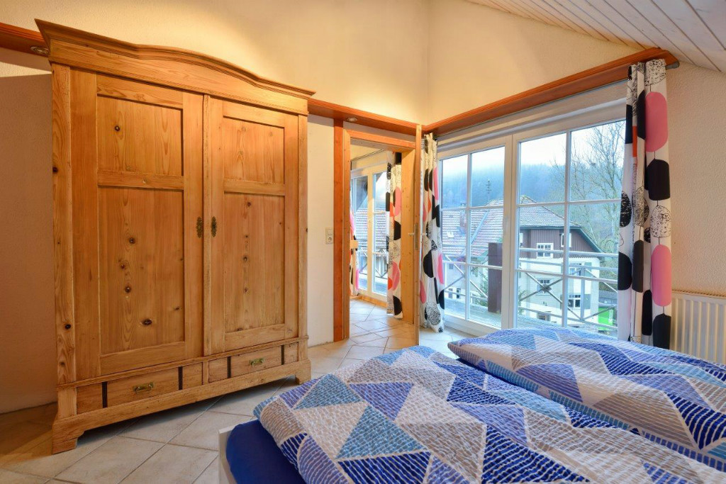 Elektrogeräten: Elektroherd und Backofen, Kühlschrank mit Gefriertruhe, Kaffeevollautomat, Mikrowelle, Spülmaschine, Wasserkocher, ausreichend Geschirr, großer Wohn- und Essbereich mit großem Sofa und einem ausziehbaren Schlafsofa. Den knisternden Kamin im Wohnzimmer werden Sie genießen. Neben dem großen Esszimmertisch gibt es einen zusätzlichen Klapptisch für bis 16 Personen. Ein großer LCD TV mit Sat-TV und DVD Spieler, hochwertige Möbel, großer Balkon über gesamte Wohnzimmerfront hinweg. Wunderschöner Blick in den Schwarzwald. Zwei Bäder u.a. ausgestattet mit: Dusche, Sauna, WC und eine weitere separate Gästetoilette. Insgesamt 4 Schlafzimmer mit