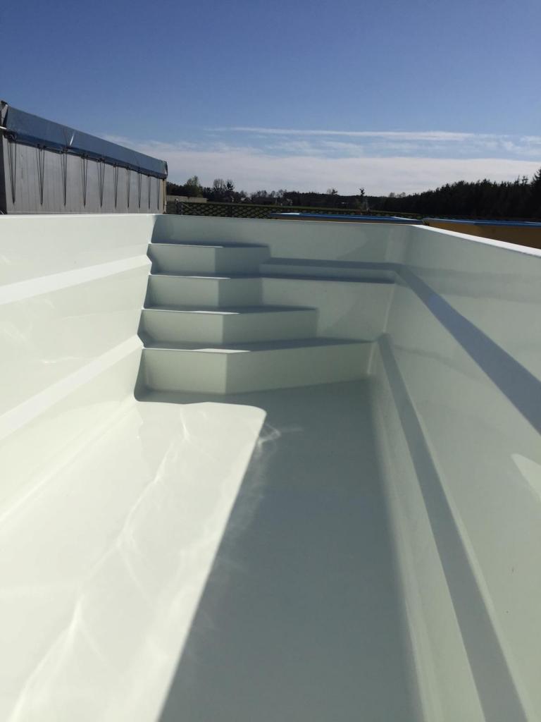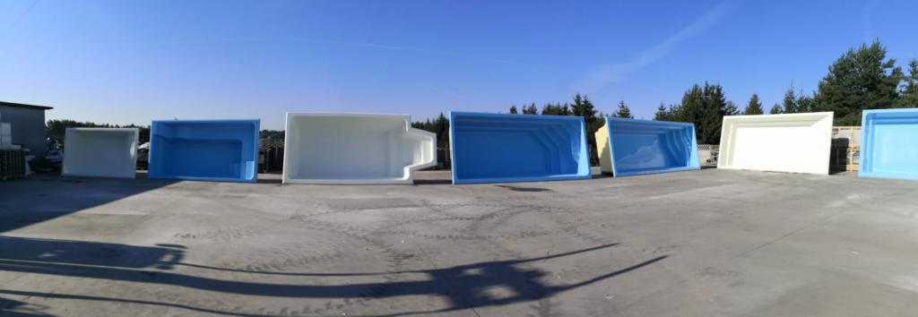 • 3 Farbvarianten der hergestellten Schwimmbecken (weiß, blau und hellgrau)