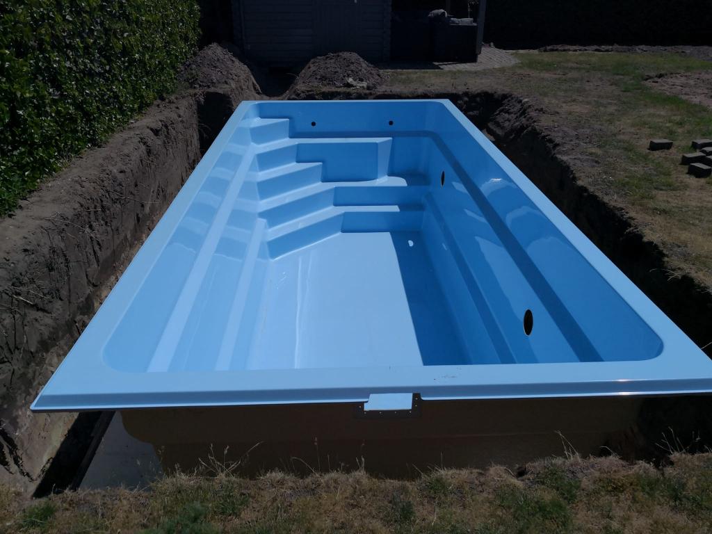 • 3 Farbvarianten der hergestellten Schwimmbecken (weiß, blau und hellgrau)