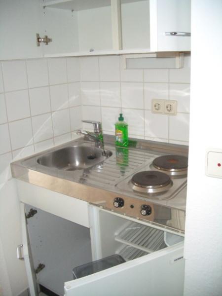> mit Pantryküche, Zimmer ausgelegt, Bad hell gefliest.