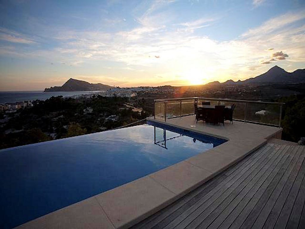 Diese exklusive Ferienvilla bietet auf 210m² Platz für 6 Personen, hat ein großes, privates Schwimmbad und die Feriengäste genießen einen fantastischen Panoramablick auf das Meer. Das Ferienhaus liegt in Spanien an der Costa Blanca in der Nähe des Ferienortes Altea, in ruhiger Lage und hat mehrere schöne Terrassen mit fantastischen Panoramablick auf das Meer. Ideal für den Urlaub mit der Familie und mit Freunden.