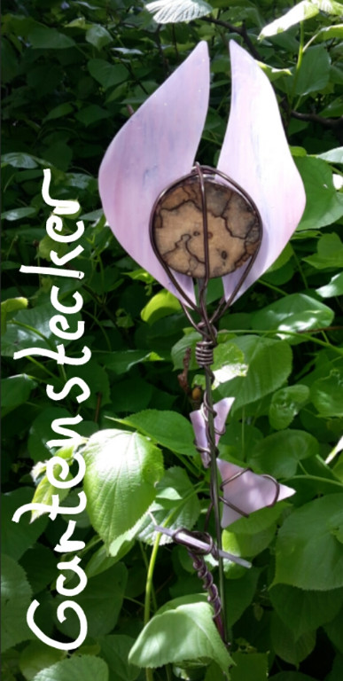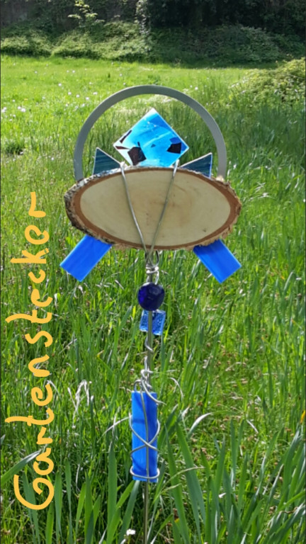 Stele/Gartenstele/Gartenstecker aus Glas und Holz im