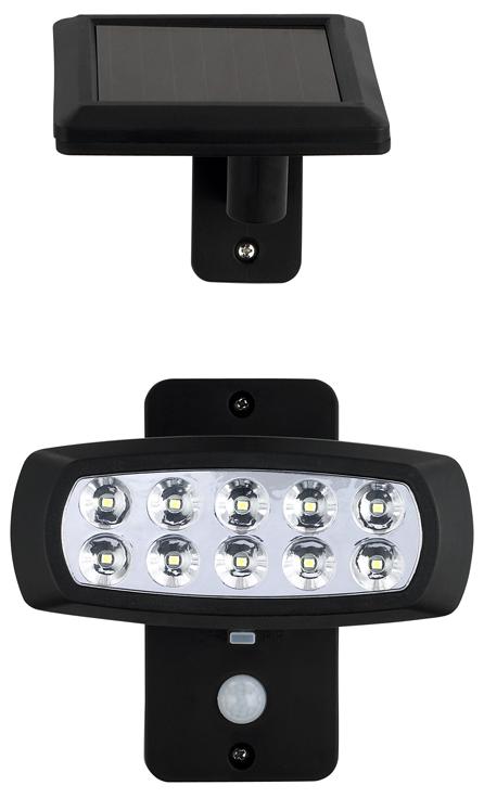 Strahler Solar, 10 weiße LEDs, Dauerlicht, Bewegungsmelder