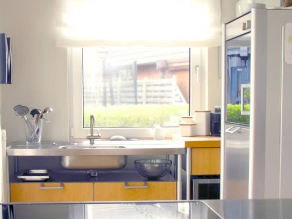 Küche: komplett eingerichtete Einbauküche von Bulthaupt, Kaffeemaschine, Wasserkocher, Toaster, Geschirrspüler, Kühlschrank mit Gefrierfach, Umluftbackofen, Ceran-Kochfeld, Mikrowelle, Eierkocher
