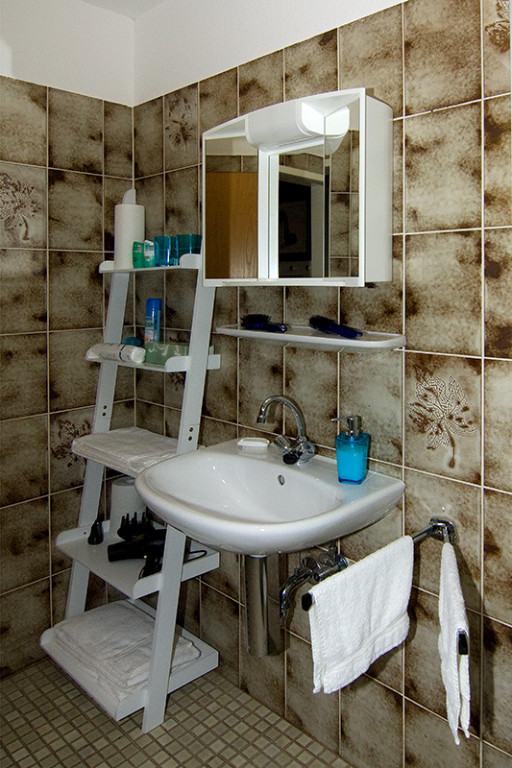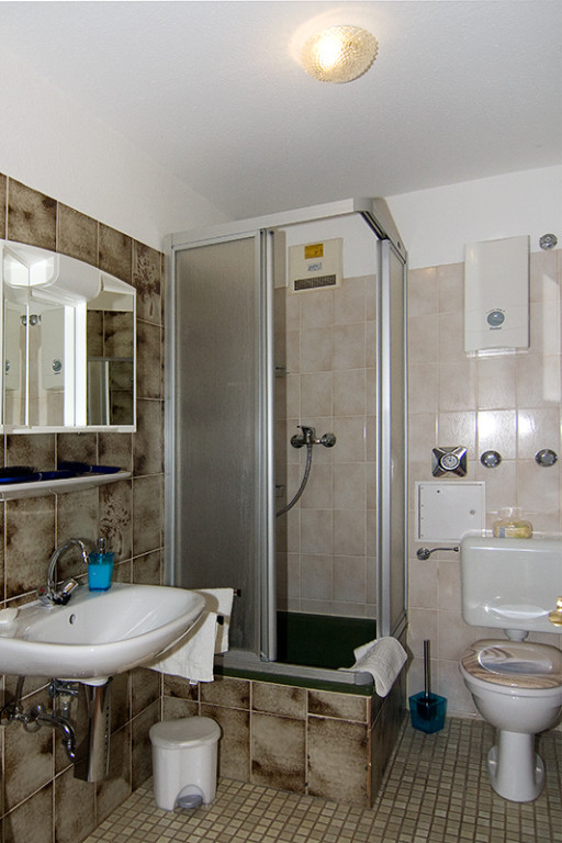 Badezimmer ( Dusche ). Zur freien Nutzung im Tageszimmer stehen Ihnen ebenfalls ein Fernseher mit DVD-Player und ein Audio-System im Seitensprung Apartment zur Verfügung.