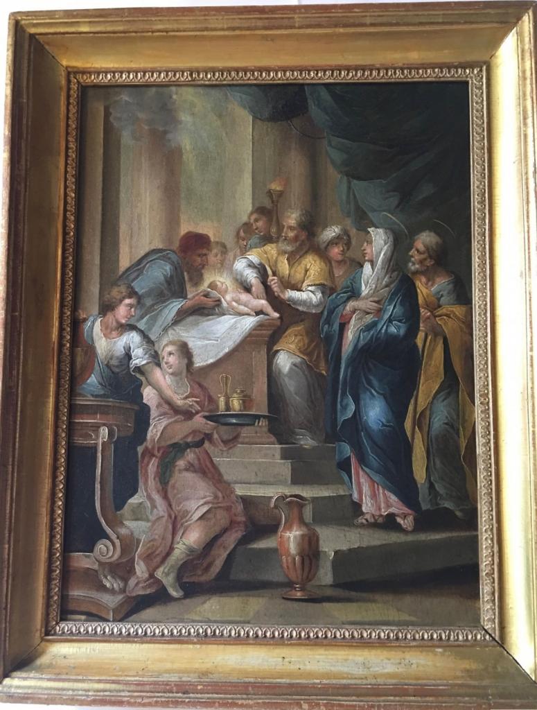 Süddeutsch/ FränkischBeschneidung Christi Gemälde Öl auf Holz um 1750/ 80 mgr