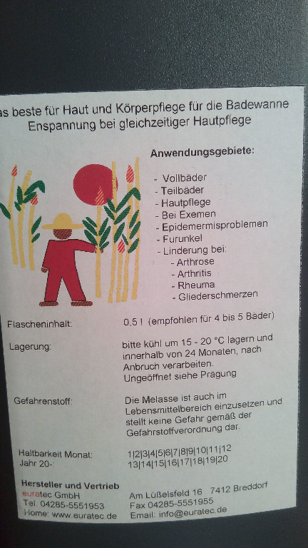 Badewanne mit warmen Wasser auffüllen Terrabath Melassebad hinzugeben und im Wasser
