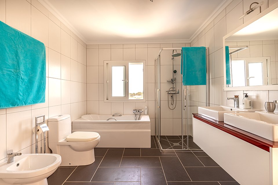 Die Ferienvilla hat 2 Etagen und verfügt über ein Wohn/Esszimmer mit Kamin und Sat-TV, eine Küche mit Geschirrspülmaschine, Waschmaschine, Trockner, 4 Doppelschlafzimmer, 4 Bäder, 1 Gäste WC und mehrere schöne Terrassen mit fantastischem Panoramablick auf das Meer. Ausgang auf die große Poolterrasse. Abgeschlossenes Grundstück mit einer Außenküche, einer großen Sonnenterrasse, einem privaten Schwimmbad mit einer Außendusche und Parkplatz. (Das Anwesen verfügt über eine Sauna. Die Benutzung der Sauna gegen Aufpreis möglich)