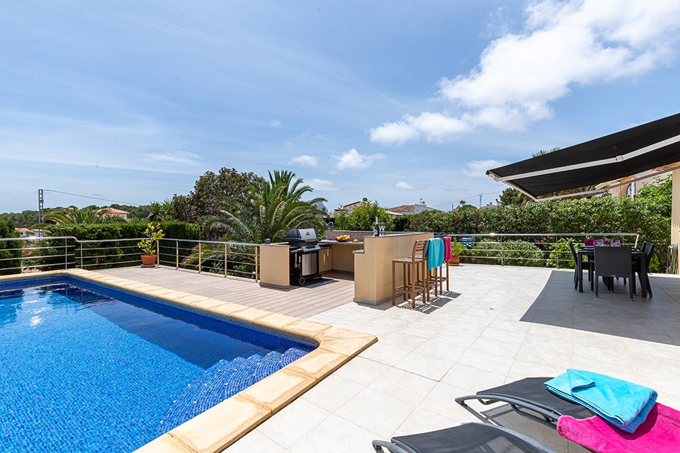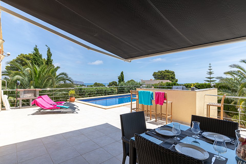Dieses exklusive Ferienhaus liegt in Spanien an der Costa Blanca zwischen den Ferienorten Moraira und Calpe in der Küstenregion von Benissa. Das gepflegte Anwesen lässt keine Urlaubswünsche offen. Die Ferienvilla ist nur 500m von der nächsten Badebucht entfernt und von der Sonnenterrasse des Hauses genießen die Feriengäste einen fantastischem Panoramablick auf das Meer und die Bucht von Moraira. Die Villa verfügt über ein großen privates Schwimmbad, eine Top ausgestattete Außenküche, eine Sauna und ist voll klimatisiert.