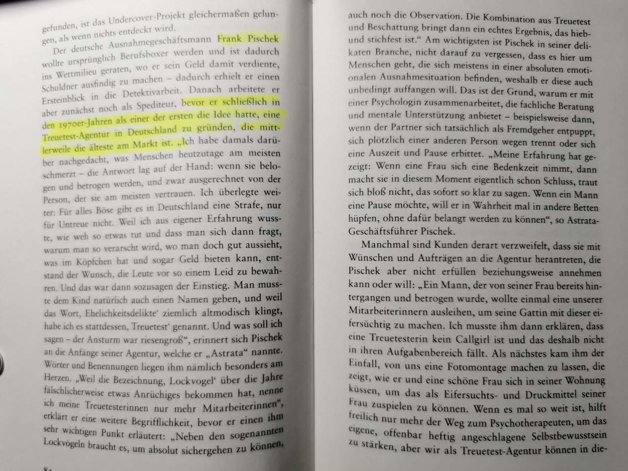 Den Werdegang von Treuetest Agentur Astrata können Sie in der unten aufgeführten Leseprobe des Bestsellerbuches Seitensprung Treuetester decken auf Lesen.