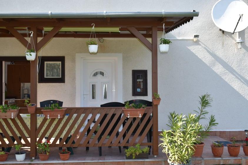In Balatonmriafürdö können Sie mit Ihrer Familie einen erholsamen Urlaub in einer ruhigen und schönen Umgebung verbringen! Das Haus liegt ca.150m vom Ufer entfernt,nicht Direkt Ufer,(privater Angeln-Steg zum See + eigene Sonnen-/Angelplattform). Das Haus (für max. 6 Personen) bietet 1 Wohnzimmer (mit deutschem SAT-TV), 2 Schlafzimmer, Küche, Bad und 2 überdachte Terrassen (Nord- und Südseite). Der Stock nicht fertig.Im gepflegten Garten stehen Sonnenschirm, Gartengarnituren, Hollywood-Schaukel,
