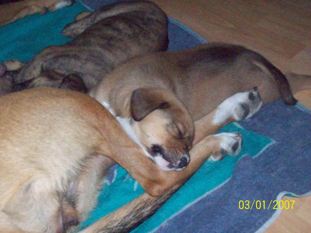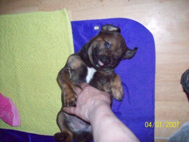 Der Vater ist ein gestromter Boxermix und die Mutter eine