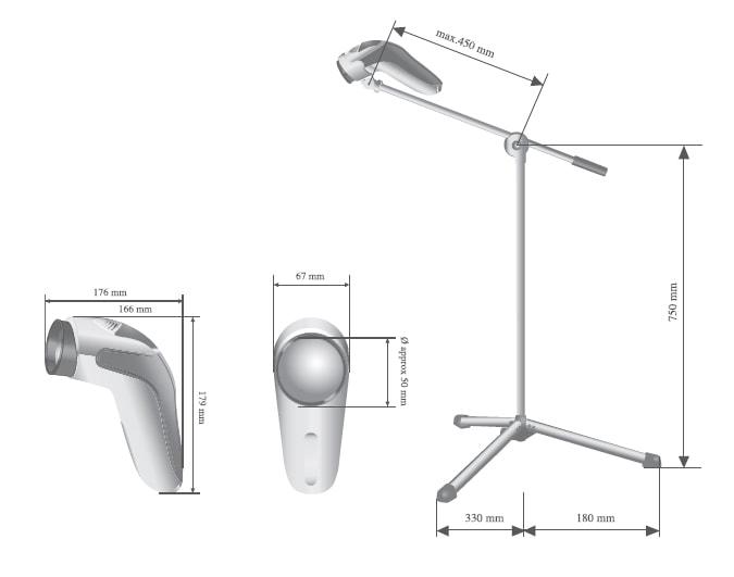Beleuchtung auf eine gewünschte Stelle, schont die Handmuskulatur, ermöglicht es, die Lampe ca. 1 m über dem Boden zu platzieren.