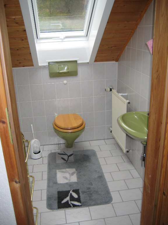 In Küche, Dusche u. WC sind die Böden gefliest. An den Wänden sind teilw. Fliesen.