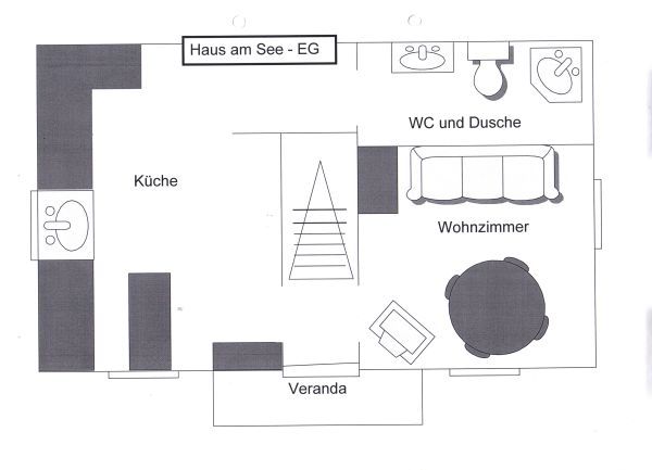 Wohnküche: warm/kalt Wasser, E-Herd mit Backofen,