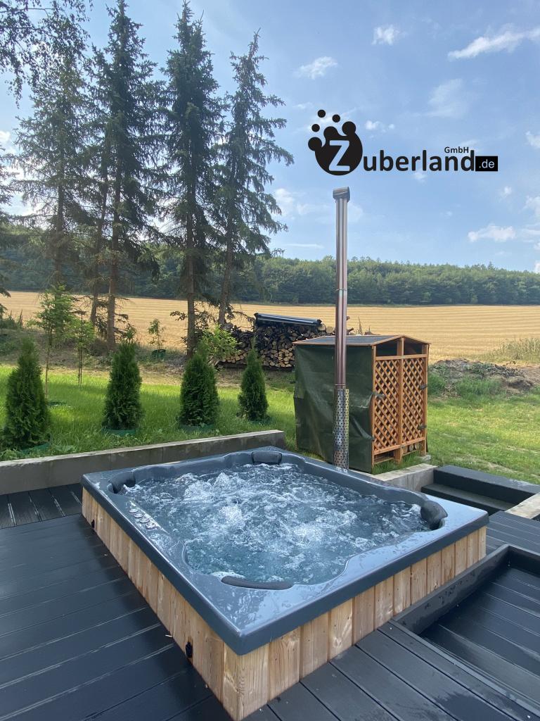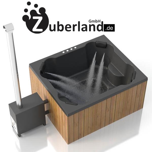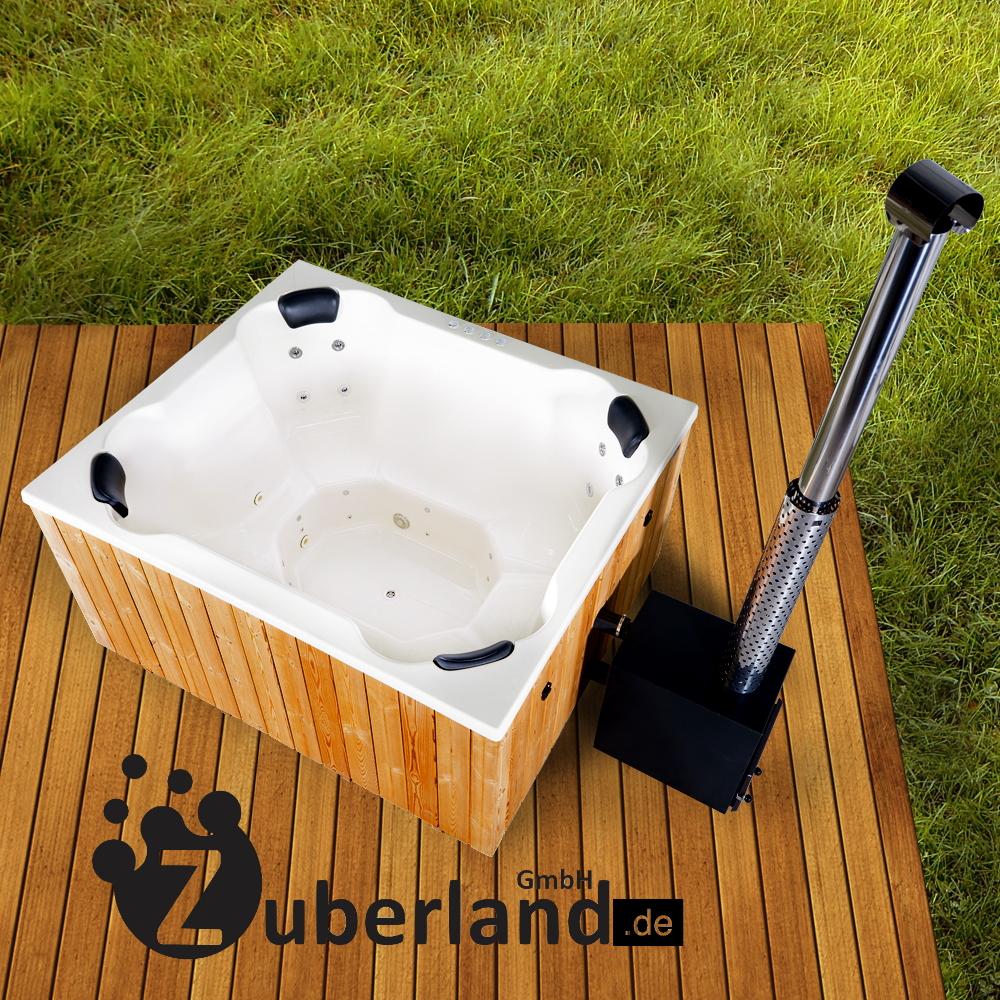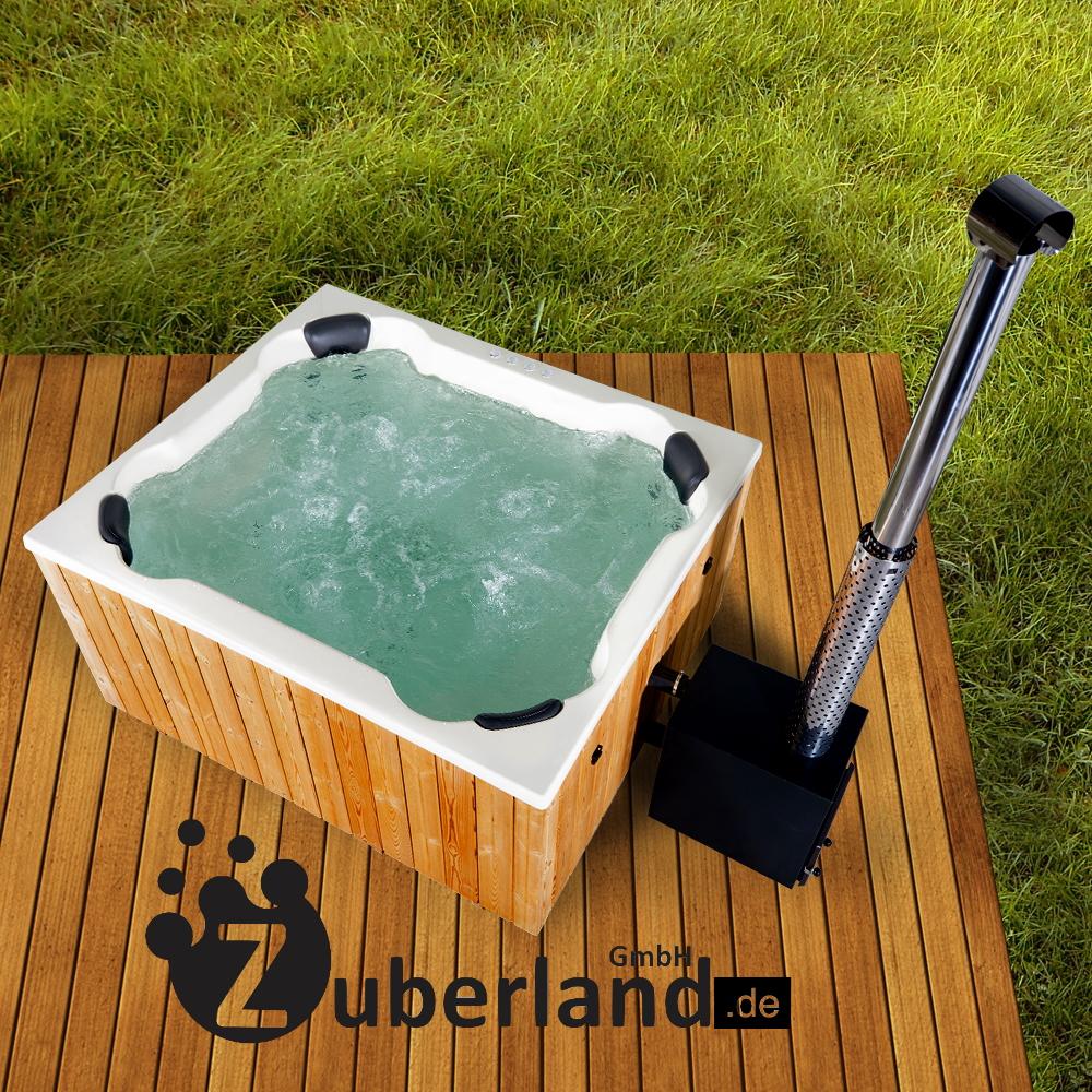 Der rechteckige Badezuber hat ein Volumen von 1400 Litern und bietet Platz für bis zu acht Personen. Die vier Ecksitzplätze sind ergonomisch geformt. Der GFK Einsatz ist sehr hygienisch und leicht zu reinigen. Die verwendeten Materialien sind beständig gegen Temperaturschwankungen und somit auch für den Einsatz in der kalten Jahreszeit geeignet.