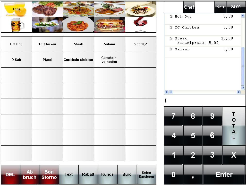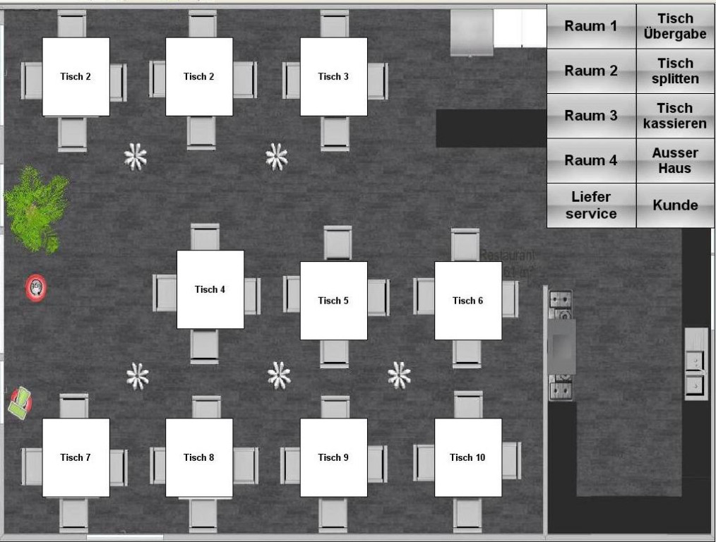 - wahlweise mit Tischen oder als Fast Food Kasse