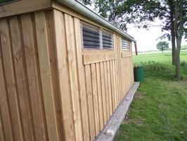als Stülpschalung mit einer Wanddicke von 48 mm. Die Aussenwände