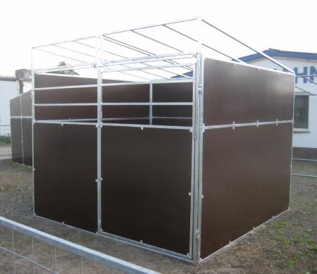 Sie haben eine Überdachung und möchten dort zeitweise Pferdeboxen platzieren. Hierfür haben wir unsere Außenbox light konstruiert.