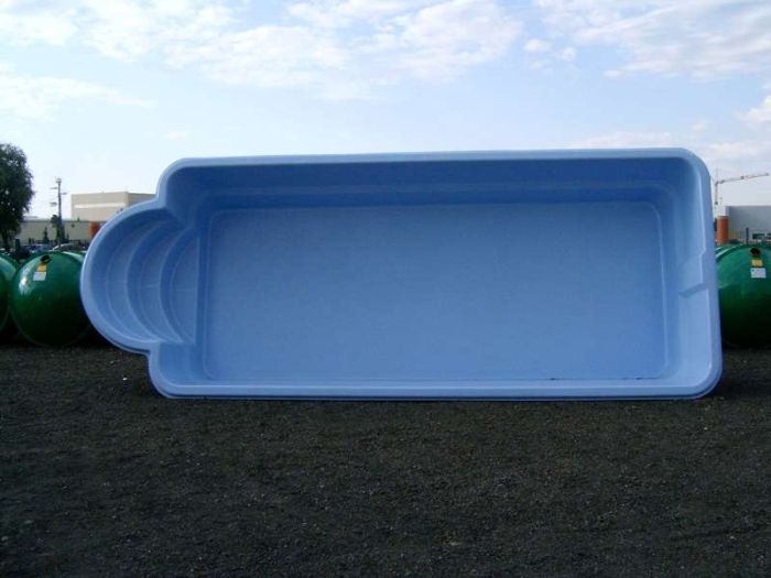 Wie verkaufen glasfaserverstärkte Polyesterbecken mit durchgefärbter Gelcoatoberfläche, die witterungs- beständig, langlebig und pflegeleicht sind. Die Becken besitzen römische Treppe mit rutschfesten großen