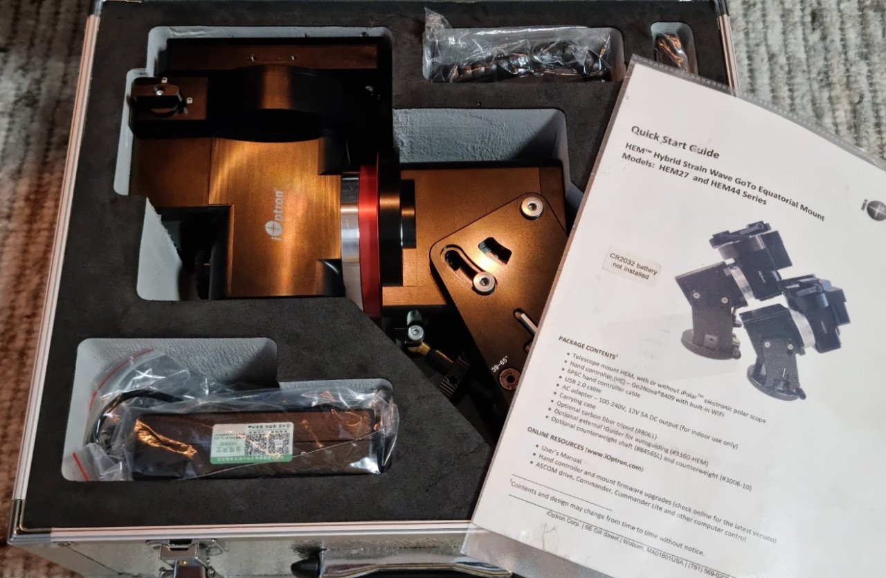 Die iOptron HEM44 EC iPolar wurde 3 bis 4x auf dem Balkon aufgebaut, kam aber nie richtig zum Einsatz, sie ist in einem ausgezeichneten Zustand, siehe Bilder. Eine Rechnung