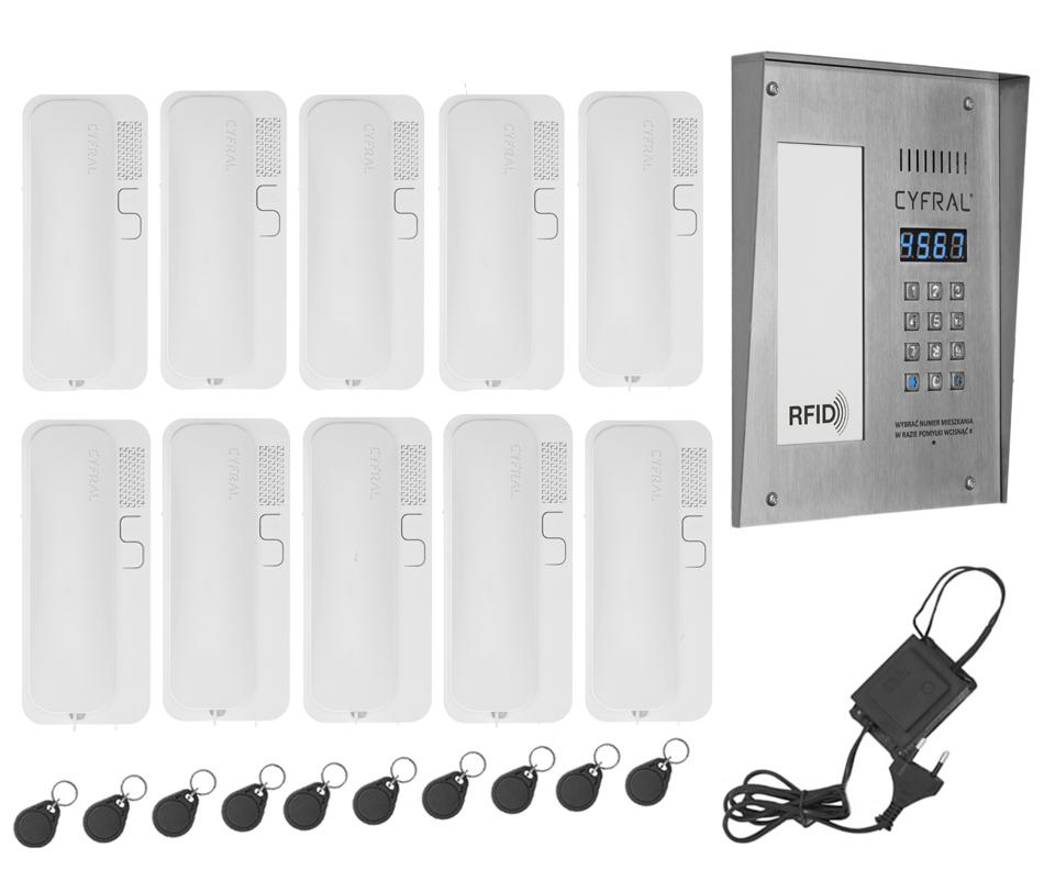Wir bieten hier Ihnen ein Gegenspprechanlageset PC3000RE + 4 Stuück Unifon SMART-D, 4 Stück RFID Schlüssel an. Das Set ist für Mehrfamilienhäuser für Hoch- und Niedrigestock geeignet