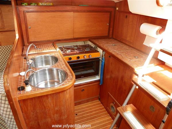Es gibt für Mitsegler zwei Doppelkabinen, eine im Bug, eine im Heck. Wir sind gut ausgestattet, Herd, Kühlschrank, Dusche und WC. Großer Salon und alles an Technik, was man braucht.