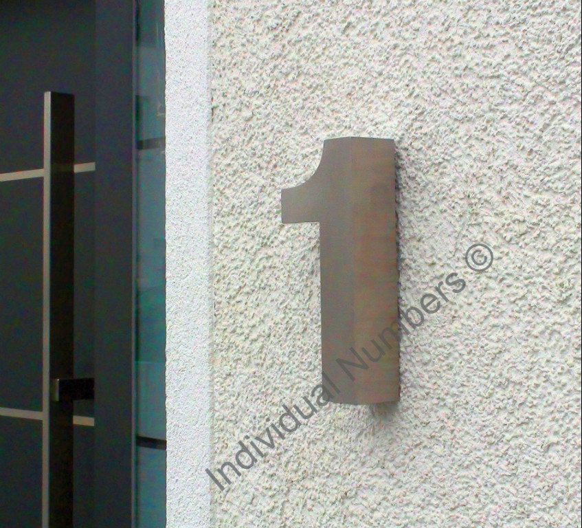 3D Hausnummer in Edelstahl 190mm Hoch und 40mm Tief - Nr. 1