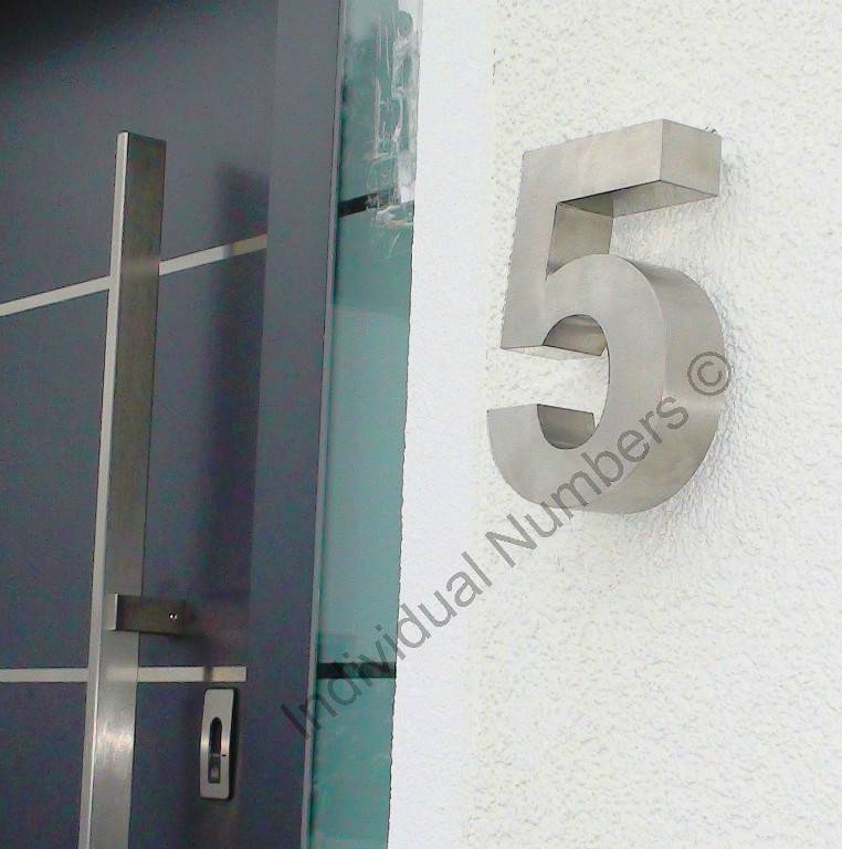 3D Hausnummer in Edelstahl 190mm Hoch und 40mm Tief - Nr. 5