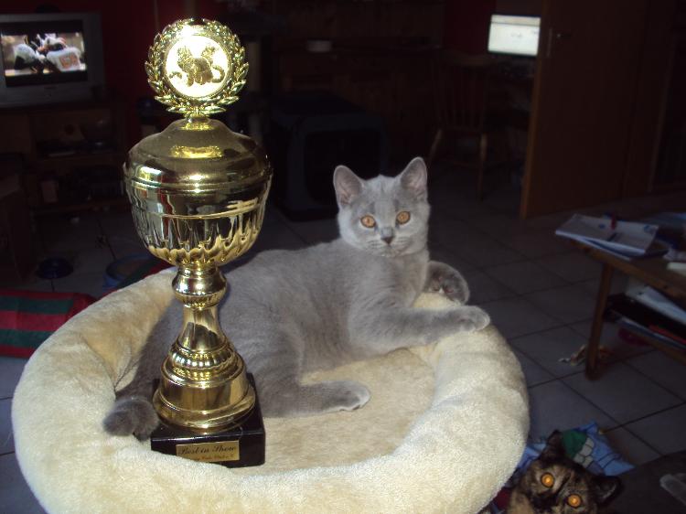 Auch ich war schon auf 2 Katzenausstellungen erfolgreich gewesen.Ich habe einen Pokal für Best in Show bekommen.