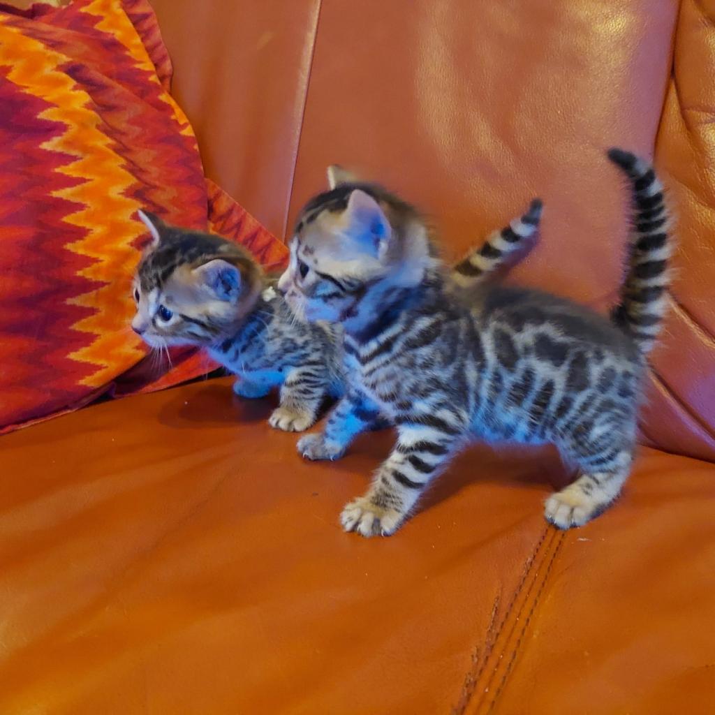 Es handelt sich um einen brown marbled Kater und ein brown rosetted Weibchen.