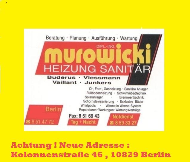 Firma: Dipl.-Ing. Murowicki Haustechnik Tel. 030/ 851 47 72 Notdienst 030/859 33 27