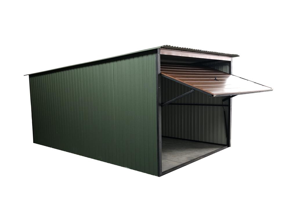 Wir bietetn Ihnen hier: 3x5 Acryl-Blechgarage mit Dachschräge nach hinten, mit einem Flügeltor in Holzmaserung an