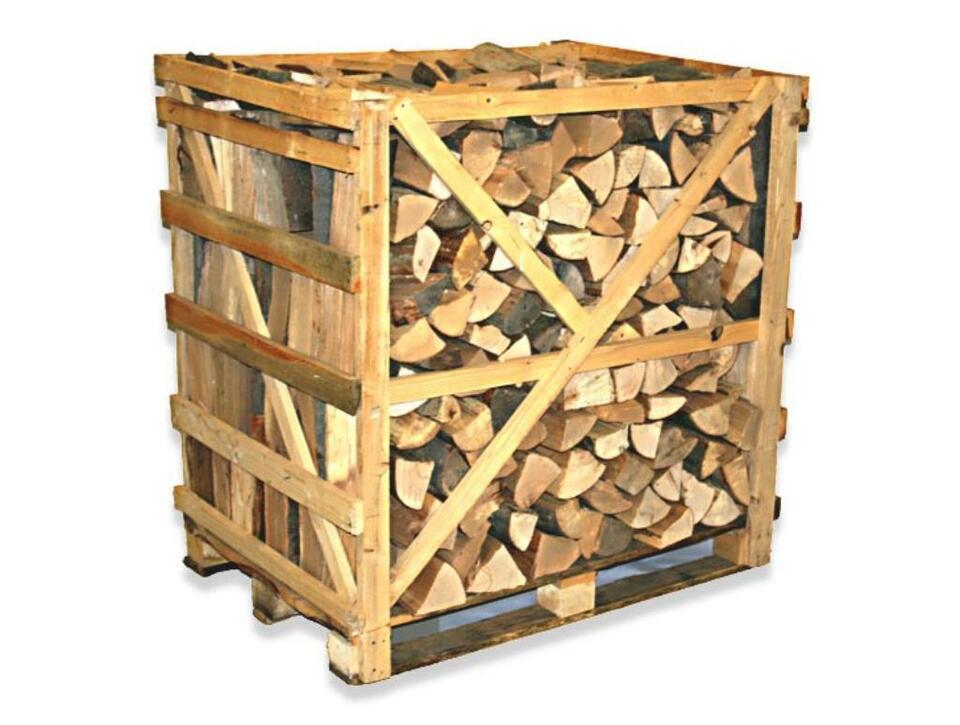 Brennholz, wie Buche, Eiche, Esche, Birke und andere Sorten. Diese sind auf 25 cm, 33 cm, 40 cm, 50 cm (15 bis 20 % Restfeuchte) zugeschnitten und gebrauchsfertig. Die Stämme werden sauber in 1-RM-Boxen oder 2-RM-Boxen gelagert und gestapelt. Bei den Kisten handelt es sich um stabile Einweg-