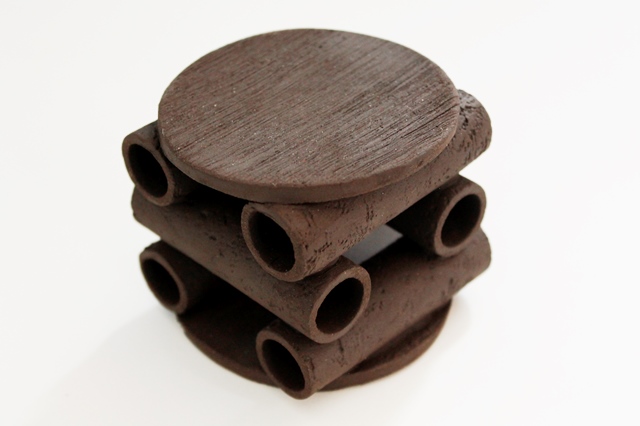 der aufgeschichteten Tonröhren eine eckige Tonplatte mit ca. 7cm Durch-