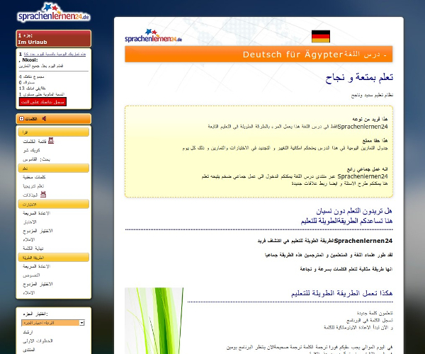 Die Menüführung dieses Deutschkurses ist auf Ägyptisch.