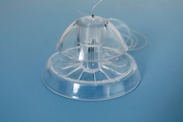 Hilfe der befestigten Schnur / Angelband aus dem Aquarium nehmen.
