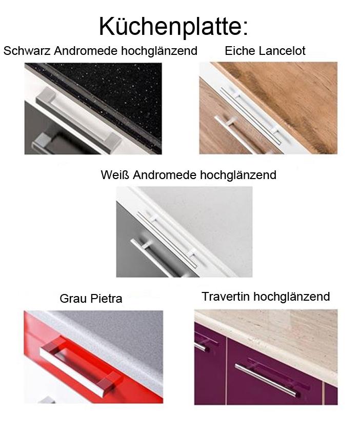 Einbauküche Küchenzeile Küchenmöbel Küchenset Hochglanz Küchenblock 2, 6m 8tlg.