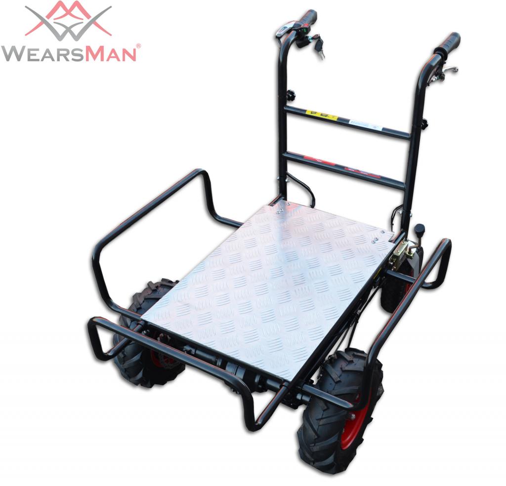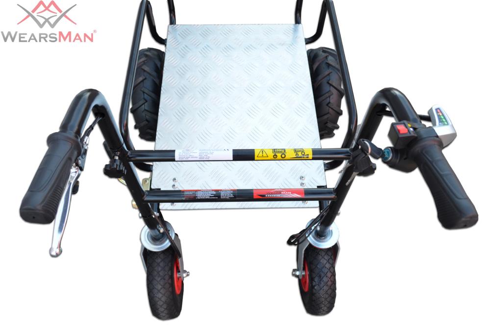 Mit dieser elektrischen Schubkarre haben Sie sehr flexible Einsatzmöglichkeiten. Sie können auf dieser Plattform verschiedenste Dinge sehr mühelos und schnell transportieren. Dadurch, dass diese Schubkarre eine Breite von nur 68 cm hat, können Sie mit Ihr auf engstem Raum arbeiten. Mit 250 kg können Sie außerdem sehr schwere Waren ohne Kraftaufwand transportieren. Seitliche Halterungen lassen sich in der Weite einstellen oder ganz entfernen.