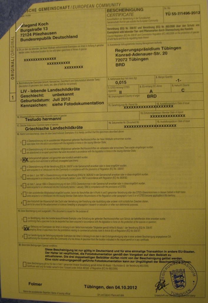 Temperatur ca. 33 Grad bebrütet, so dass eine hohe Anzahl von weiblichen Tieren zu erwarten ist. Die entsprechenden EU- und Cites Papiere sind selbstverständlich vorhanden. Beratung vor und nach dem Kauf sind für mich selbstverständlich. Gerne können die Tiere in Pliezhausen unverbindlich besichtigt werden. Wenn schon Tiere oder eine Gruppe vorhanden sind, geben wir auch gerne einzelne Tiere ab. Sonst nur paarweise, da diese Tiere nicht allein gehalten werden sollten. Ältere Tiere auf Anfrage.