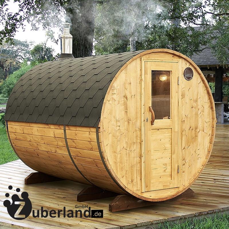 Fass-Sauna , Saunafass, Sauna (Länge 3m, Durchmesser 2m) mit Elektro-Ofen
