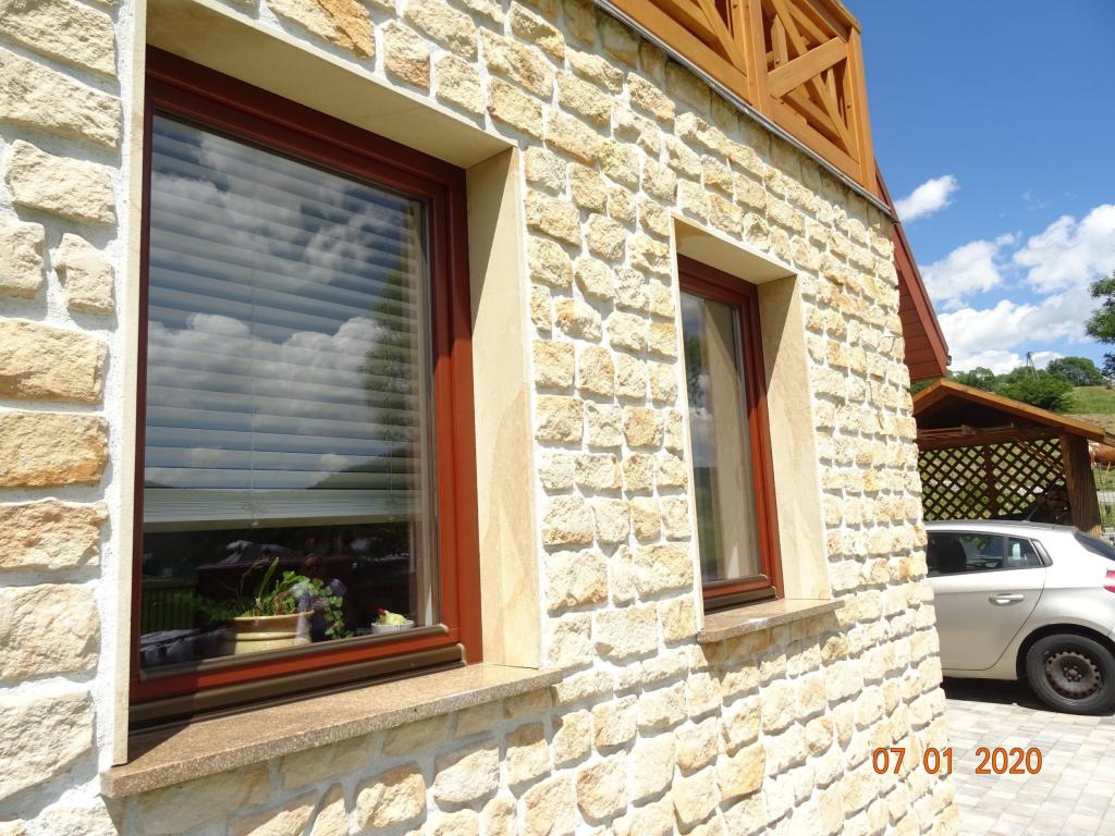 Spalttafel “Schichtmauer” das sind geschnittene Elemente, die wie Ziegel aussehen. Solche Tafeln haben Klebseite zum Grund (nach Säge), d. h. Glatt,