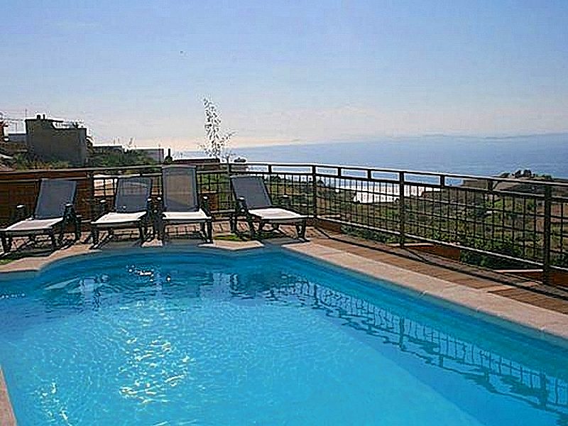 Badezimmern (Dusche bzw. Badewanne mit Dusche, Waschbecken, WC und Bidet). Auf der unteren Terrasse befindet sich der Pool mit Sonnenterrasse. Der Blick von hier auf die Küstenorte und das Meer ist wunderschön.