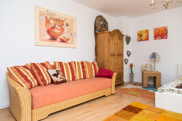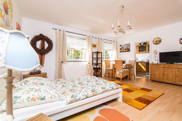sanfte Farben, pure Gemütlichkeit, das strahlt die Landhaus Wohnung im 2 OG aus. Mit 35 qm gehört Sie zu der größten Wohnung unter den kleinsten. Ein Zimmer als Schlaf-, und Wohnbereich für bis zu 4 Personen nutzen, ist hier mit Leichtigkeit möglich. Das