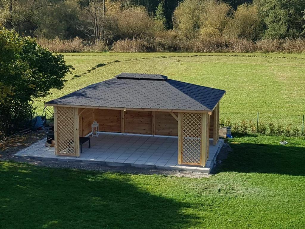 Wir laden Ihnen ein, ein schönes Gartenhaus zu kaufen, das sich perfekt in die Gestaltung jedes Gartens einfügt! Wenn Sie von einem idealen Ort für einen Grill zu jeder Jahreszeit träumen - hier ist es! Die angebotene Überdachung, mit Dimensionen von 4x6m, wird aus Kiefernholz herausgestellt und mit Holzschutz Drewnochron in jeder ausgewählter Farbe imprägniert. Die Farben zur Auswahl sind: Grün, Japanische Kirschfarbe, Wenge, Tik, Grau, Naturkiefer, Kiefer, Mittel Palisander, Palisander, Dunkle Nuss, Dunkle Eiche, Eiche und Zeder.