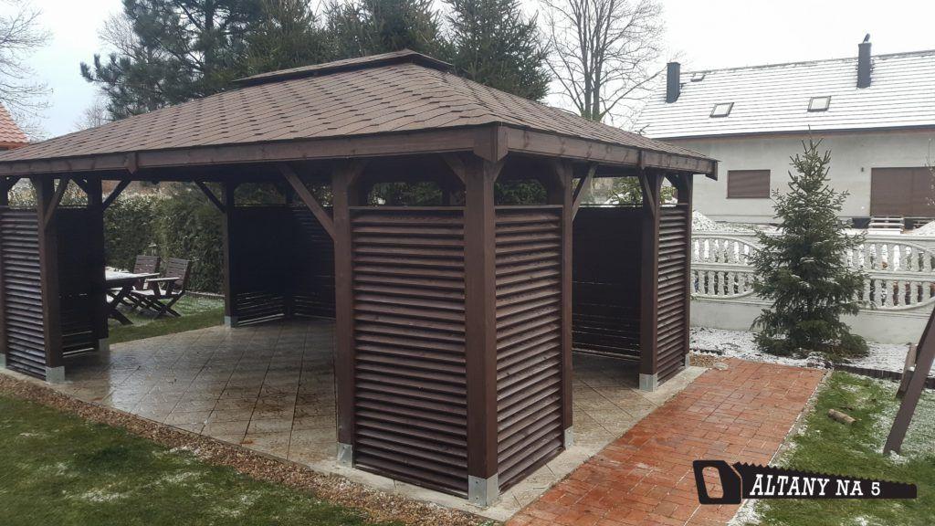 Die Gartenlaube wird mit Bitumenschindeln gedeckt, dieser Farben Sie wählen können (Muster unten). Das Dach ist in einem Winkel von ca. 25 Grad geneigt. Diese Art von Gebäude ist die perfekte Idee für Ihren Garten oder Kleingarten. Eine Gartenlaube ist eine funktionelle Ort für Erholung, dank dessen können Sie sich bei jedem Wetter an der frischen Luft entspannen können. Sie müssen keinen Grill mehr wegen des Regens absagen! Und auch das moderne Design der angebotenen Holzüberdachung wird ein perfekte Betonung bei der Gestaltung Ihres Gartens sein.