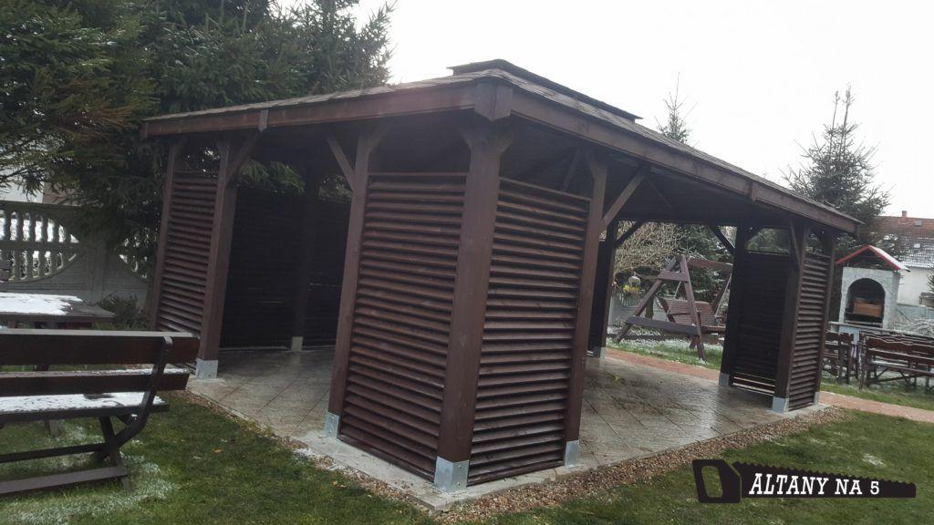Wir laden Ihnen ein, eine schöne Holzgartenlaube aus Kiefer -und Fichtenholz zu kaufen. Die Laube wird aus Kiefernholz herausgestellt. Die ganze Konstruktion wird auf Tragsäulen gestützt. Das Holz wird mit Holzschutz Drewnochron in jeder ausgewählter Farbe imprägniert, Musterkatalog auf eines der Bilder. Die angebotene Konstruktion besitzt drei offene Wände, und eine Wand, die komplett bebaut ist.