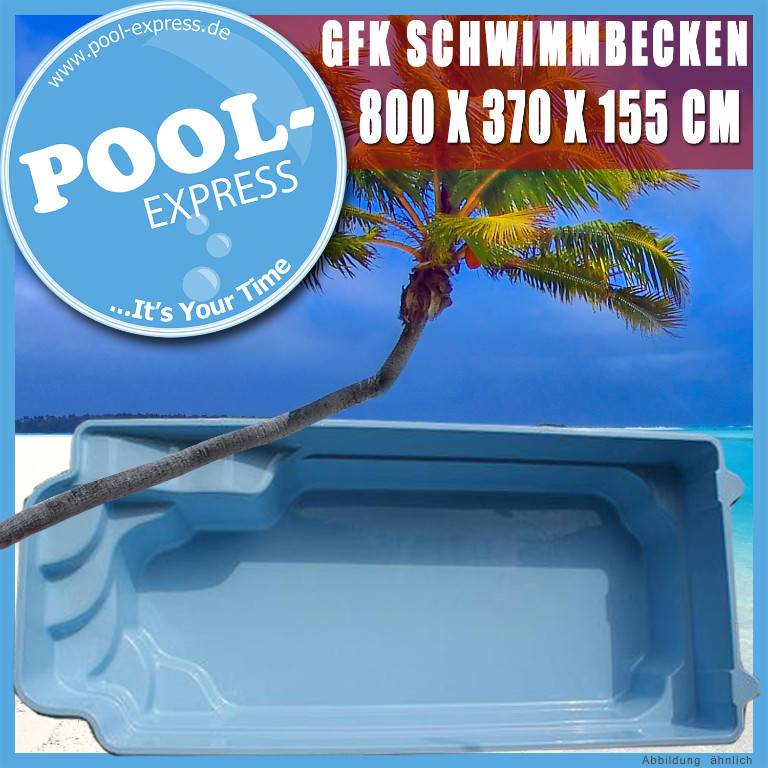 GFK Schwimmbecken 8.0 x 3.7 x 1,55 GFK Pool vollisoliert fertigpool einbaubecken