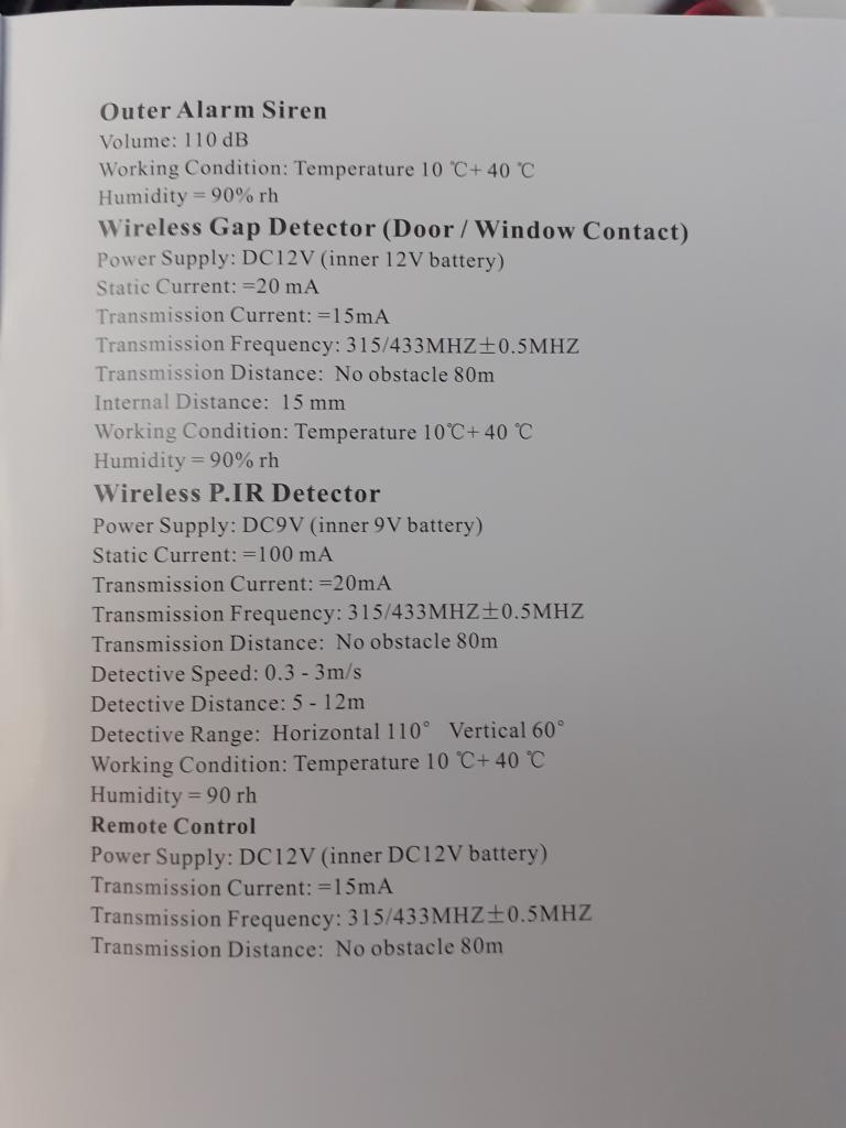 Bewegungsmelder, Funk-Tür (bzw. Fenster-)kontaktmelder, 2 IR-Kontrolleinheiten (Schlüssel),