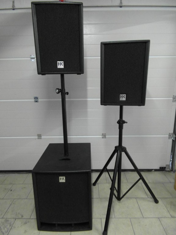 Gebraucht gekauft ( war damals 3 Jahre alt, jetzt also 6 Jahre ) und habe damit Hochzeiten, Geburtstage etc. damit als DJ bespielt. Die Anlage wurde nie an die Grenzen gefahren und immer in den Schutzhüllen transportiert. Es macht wirklich Spaß mit dieser Anlage am Wochenende loszuziehen, da man genug Leistungsreserven dabei hat. Der optische Zustand ist bis auf ein paar Schrammen ok, technisch wie am ersten Tag. Leider habe ich vom Balanceregler die Abdeckung verloren, hat mich aber nie gestört. Kann man für 5 € bei HK bestellen. Die Anlage wird ohne 19% MwSt verkauft. Zu der Auktion gehören natürlich die Boxen, 3 Schutzhüllen, 1x KM Stativ mit M16 Aufnahme für den Subwoofer, 1x Teleskopstativ und die Schutztasche für die Stative.